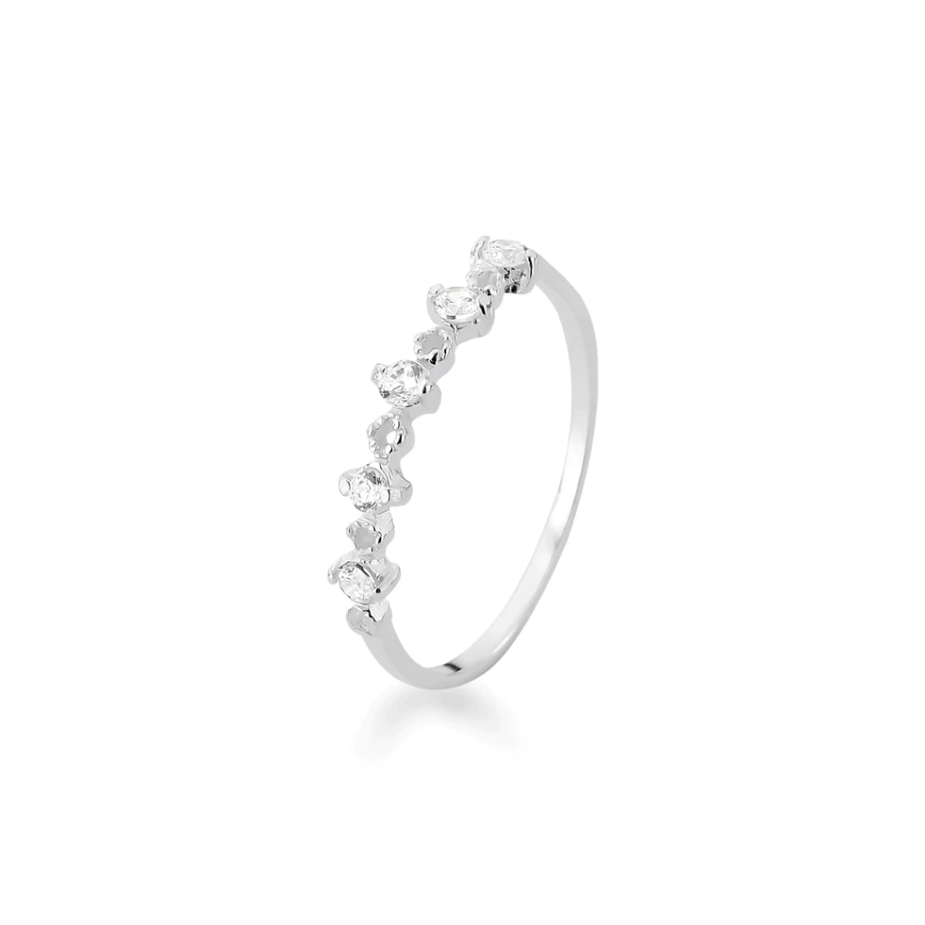 Eleve a sua coleção de joias com o Anel de Prata Aparador Cravejado. Este delicado anel aparador cravejado é perfeito para complementar outras joias, adicionando um toque sutil de brilho e elegância.
