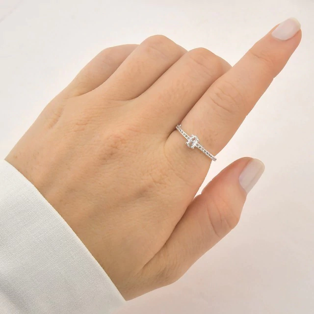Eleve a sua coleção de joias com o Anel Solitário de Prata Oval Cravejado com Zircônia. Este anel solitário com pedra oval de zircônia é perfeito para quem busca um toque de romantismo e elegância.