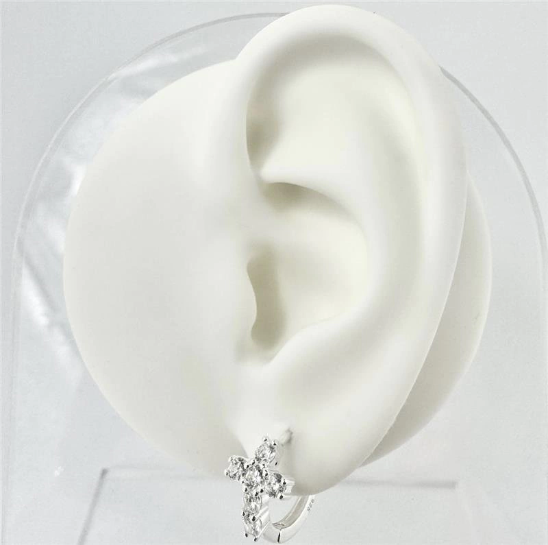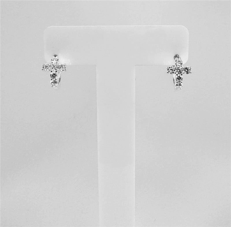 Modelo: Argola de Prata Cruz Cravejada 1,7mm x 1,2cm