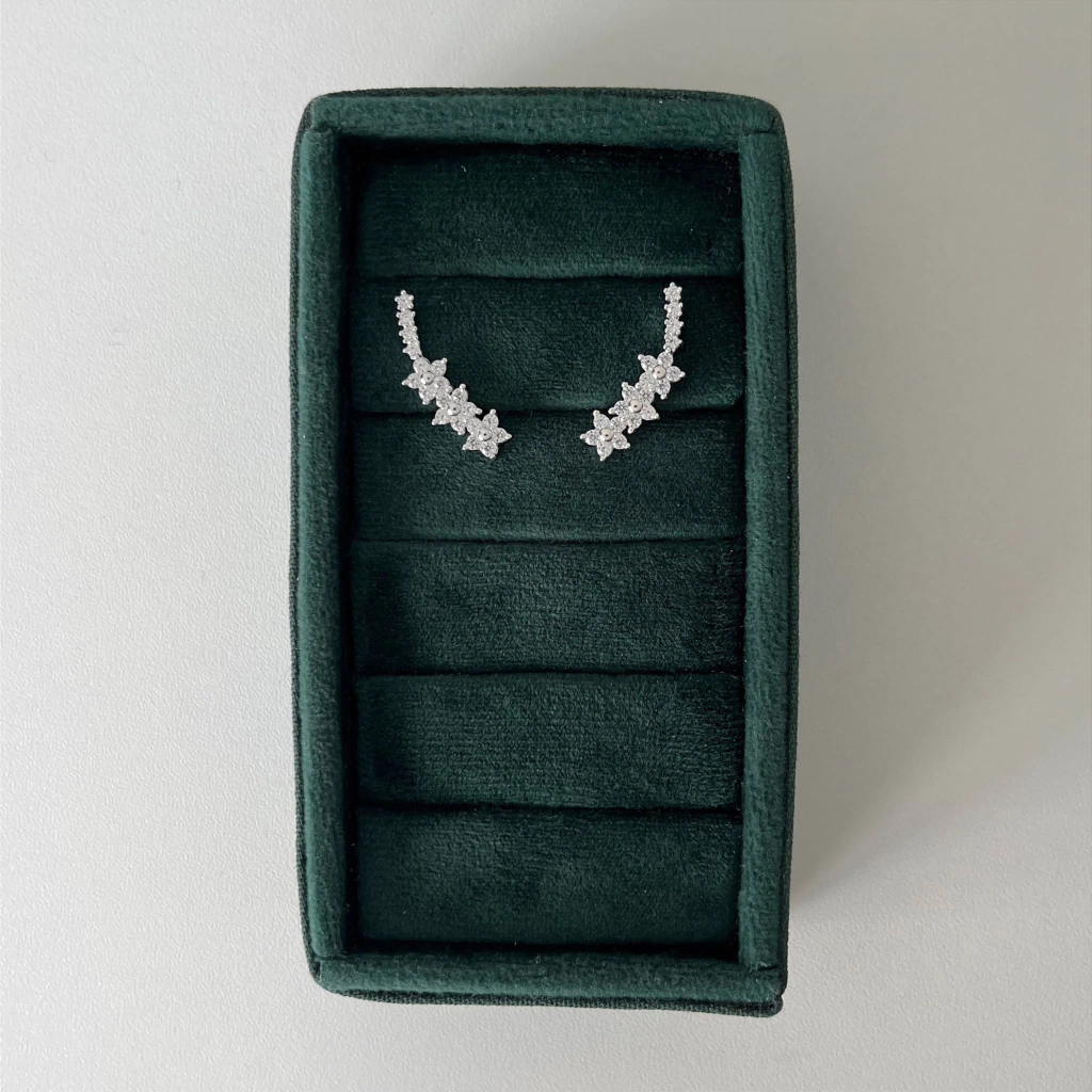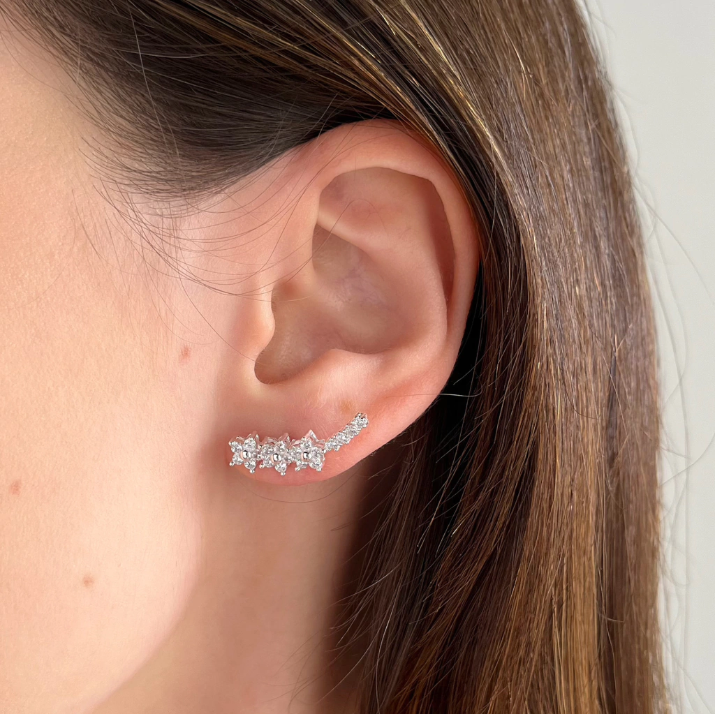 Modelo: Brinco de Prata Ear Cuff Flores Brilhantes Zircônias Brancas