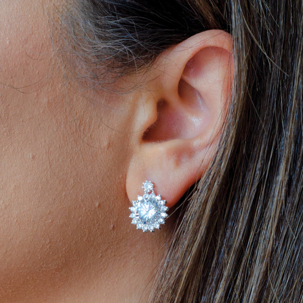 Adicione o Brinco de Prata Flor 14mm com Ponto de Luz à sua coleção e ilumine seu visual com esta joia versátil e cheia de elegância!
