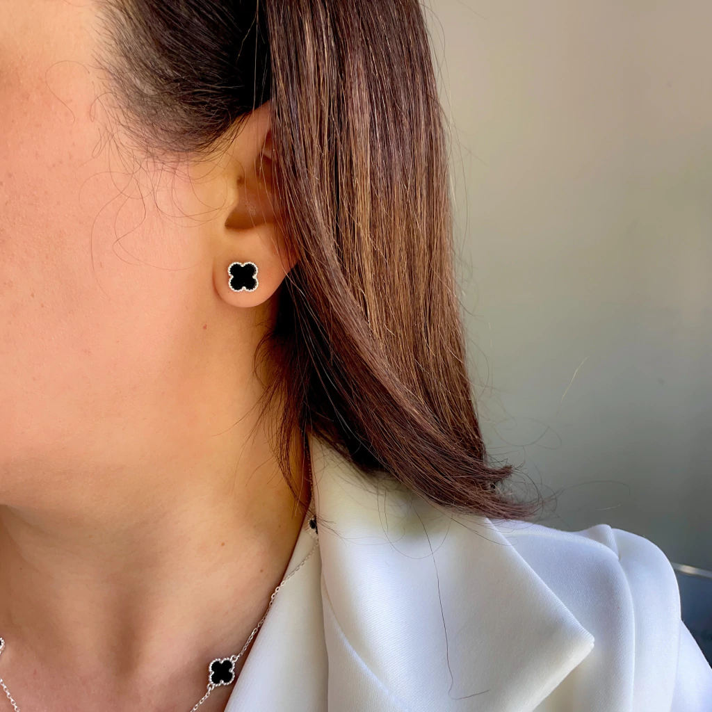 O Brinco de Prata Trevo Ônix - 1,1cm é uma joia que combina estilo e simbolismo. O design em forma de trevo representa sorte e boas energias, enquanto a pedra natural ônix traz sofisticação e um toque de mistério. Ideal para complementar produções do dia a dia ou ocasiões especiais.