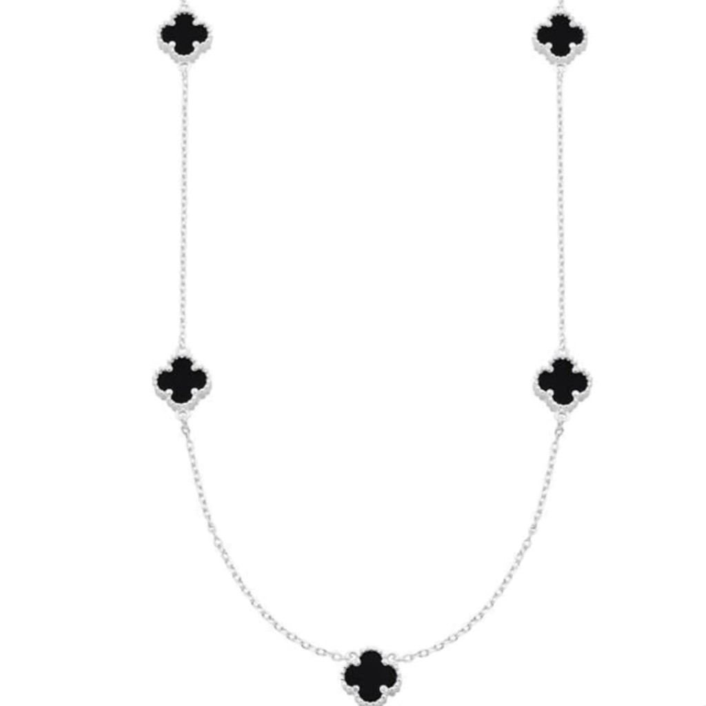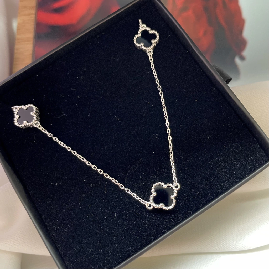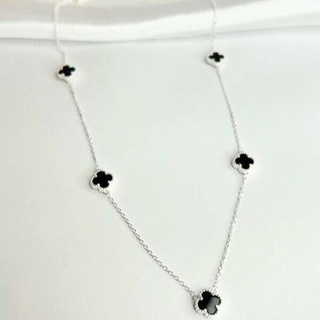 A Choker de Prata 5 Trevos Pedra Ônix é uma peça moderna com um toque de elegância e significado. Com cinco pingentes de trevo em pedra ônix, esse colar simboliza sorte e proteção, além de trazer um contraste marcante com a prata.