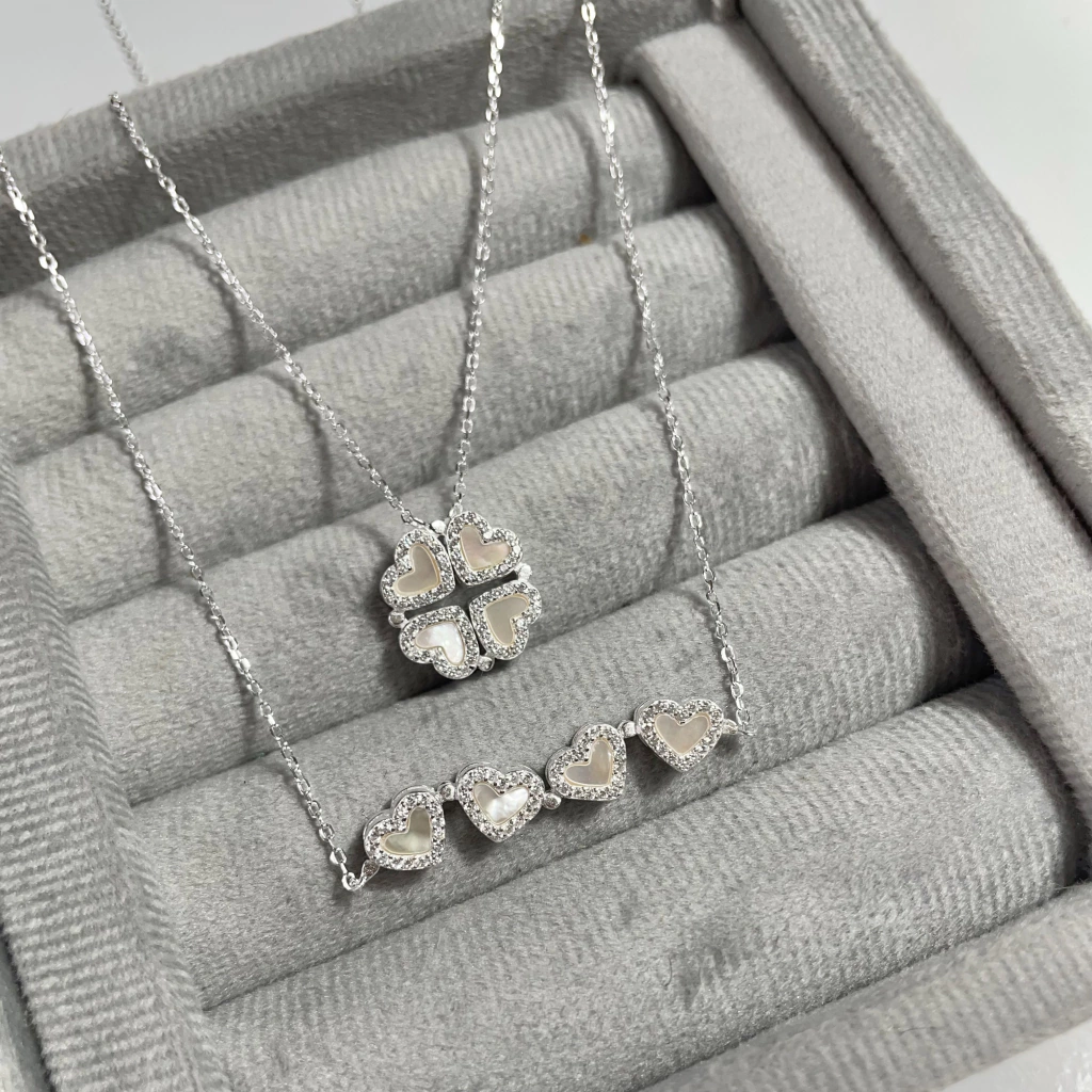 O Colar de Prata 4 Corações Madrepérola com Imã 2 em 1 é uma peça versátil e delicada, que combina o brilho da prata 925 legítima com a sofisticação da madrepérola. Seu design com imã permite diferentes formas de uso, transformando o colar em duas peças distintas.