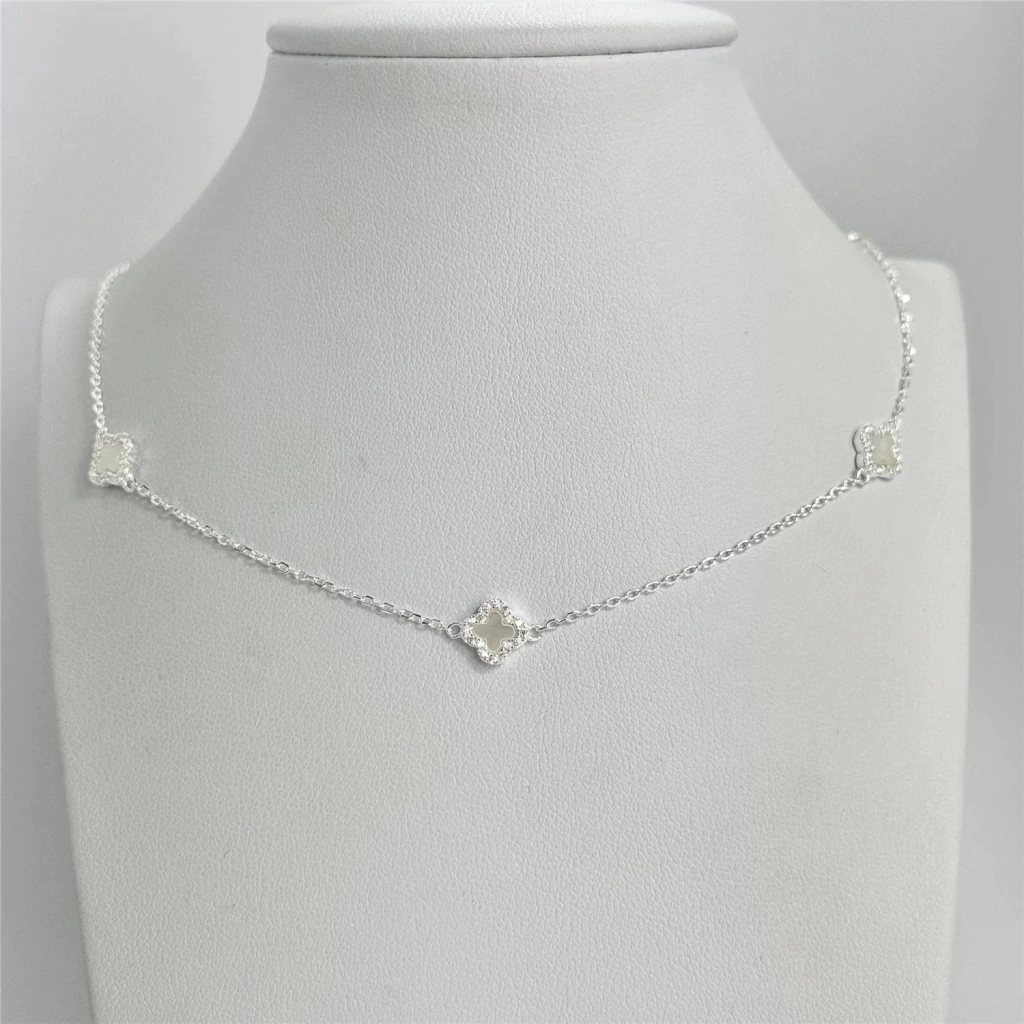 O Colar de Prata 5 Trevos Madrepérola com contorno cravejado é uma joia delicada e sofisticada. Os trevos de madrepérola de 8mm trazem brilho natural e um toque de sorte, enquanto os contornos com zircônias adicionam elegância ao visual.
