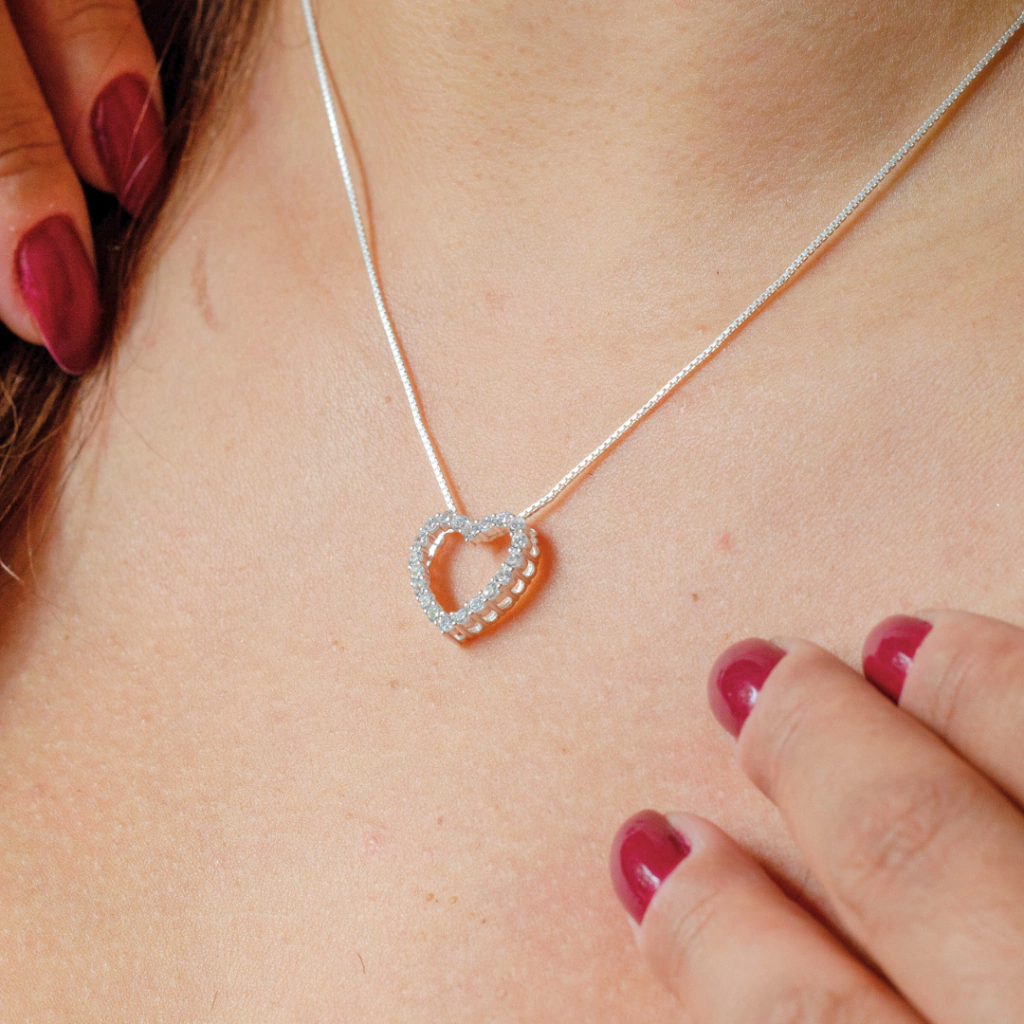 Modelo: Colar de Prata Coração Cravejado - 1,5cm