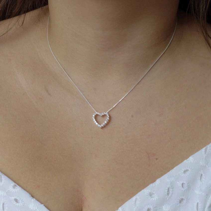 O Colar de Prata Coração Cravejado é a escolha perfeita para quem busca um toque de delicadeza e brilho em suas joias. Com um pingente de 1,5cm em formato de coração cravejado, ele traz charme e sofisticação para qualquer ocasião.