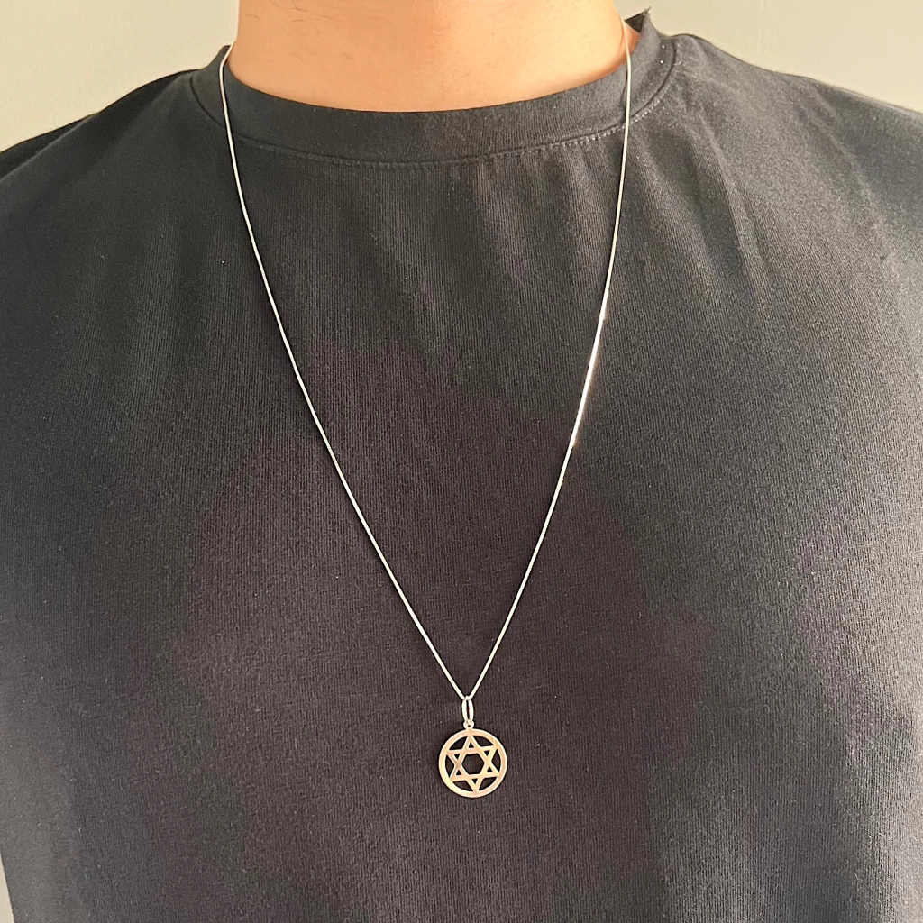 Descubra a força e a proteção do nosso Colar Masculino Estrela de Davi Grande em Prata 925. Criado para homens que valorizam sua fé com estilo, este colar apresenta um pingente imponente da Estrela de Davi, proporcionando um visual marcante e significativo. Fabricado em Prata 925, o colar possui um comprimento de 70cm, ideal para um ajuste confortável e masculino. Com um pingente medindo 1,7cm, esta peça é uma expressão de devoção e elegância. Perfeita para quem busca adicionar um toque de espiritualidade e estilo ao seu visual diário.