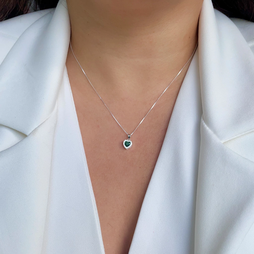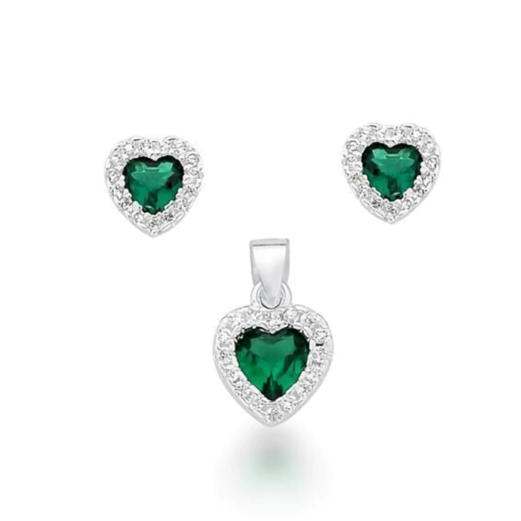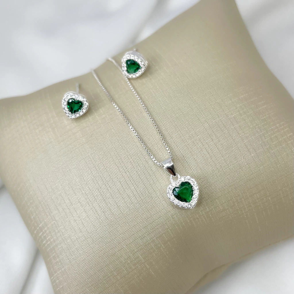 O Conjunto de Prata Coração Cravejado com Zircônias - Verde traz o brilho e a elegância das zircônias verdes em um design romântico e delicado. Ideal para quem busca uma joia que une estilo, cor e sofisticação no dia a dia ou em momentos especiais.