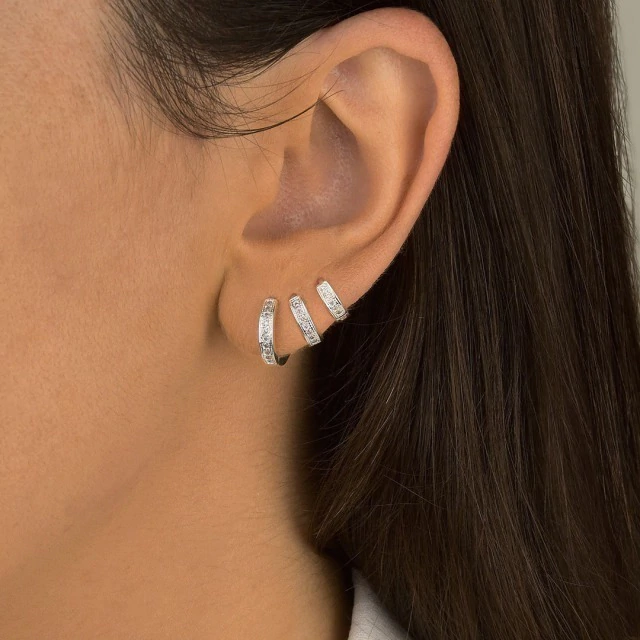 Eleve a sua coleção de joias com o Trio de Argolinhas de Prata Cravejadas. Seu design sofisticado e versátil, composto por três argolinhas cravejadas, é perfeito para quem busca um toque elegante de brilho.